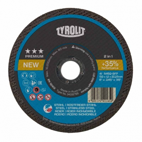Disco corte tyrolit premium a46q-bfp acero-inox 178×1,6×22,23mm