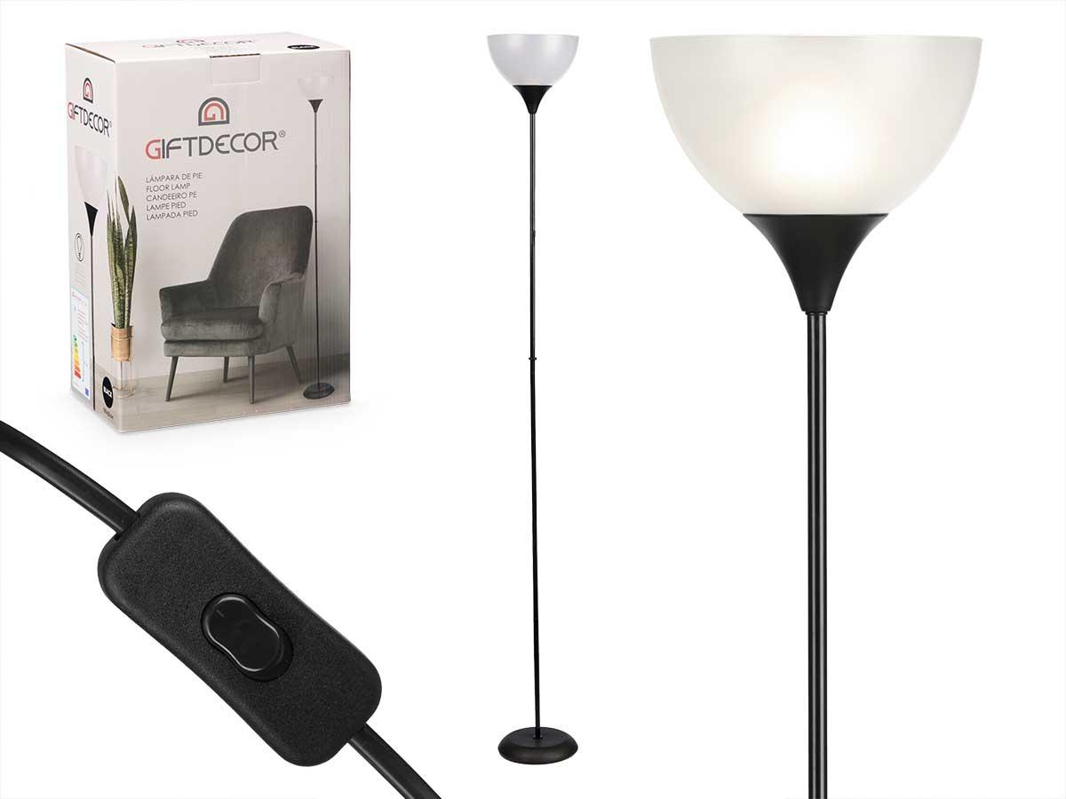 Giftdecor Lámpara de Pie Negra 22x185x22 cm, Metal y Plástico, E27 60W máximo (2 Unidades)