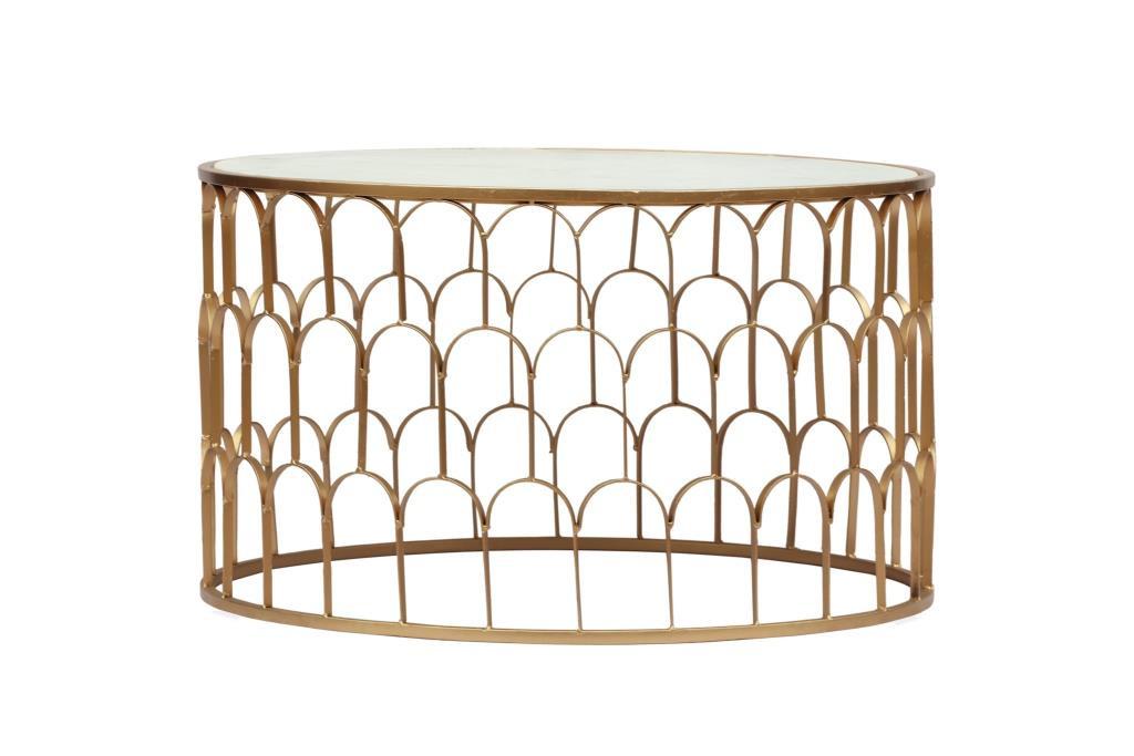 DKD Home Decor Mesa Centro Glam Hierro Mármol Dorado Blanco 87x87x51.5 cm