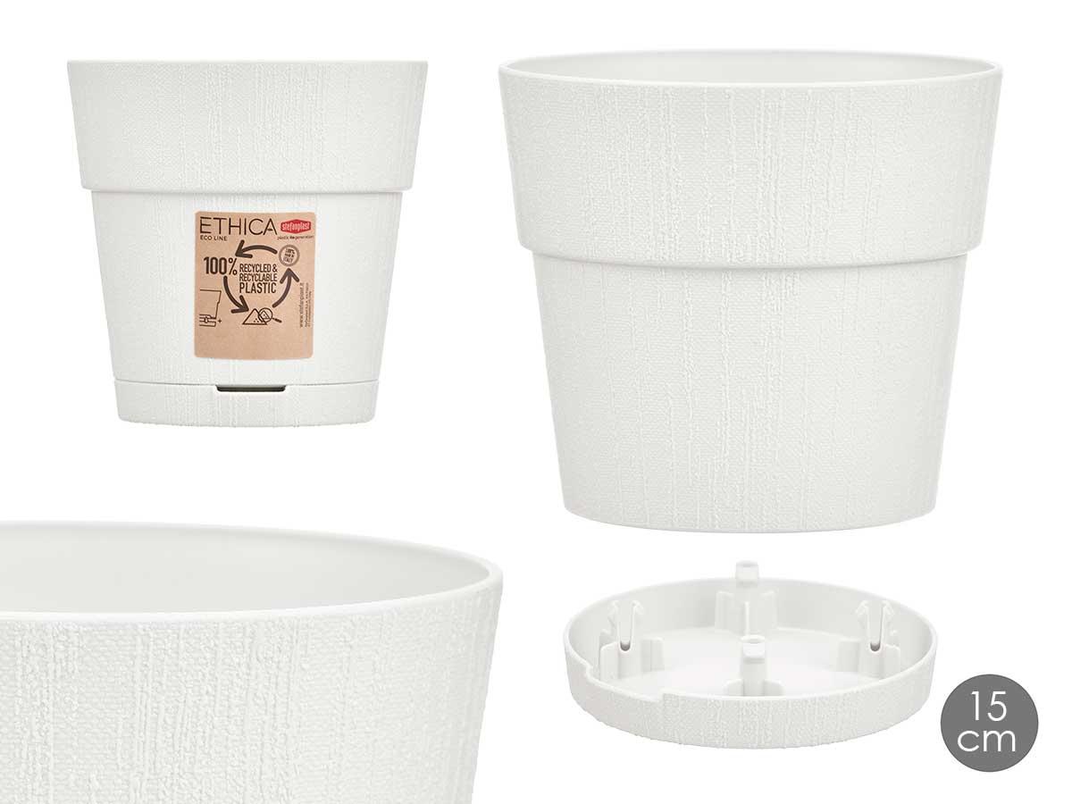 Stefanplast Maceta Ética de Plástico Blanco 15 cm con Reserva de Agua 1.5L (12 Unidades)