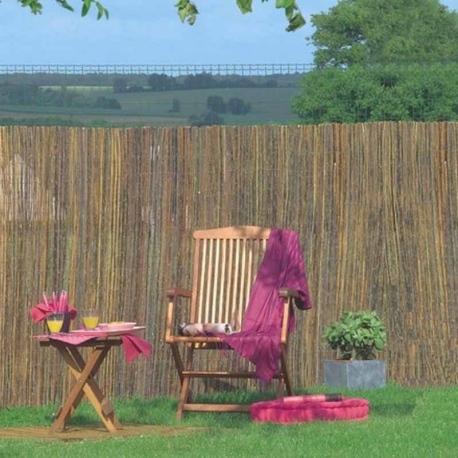 Montada con alambre de hierro galvanizado cada 10 cm a lo largo de su altura, esta cerca de brezo fino es resistente y fácil de montar.